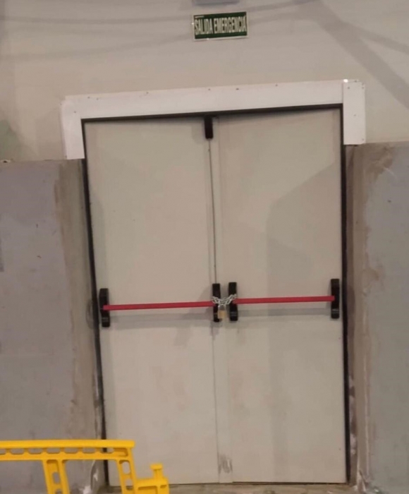 • La salida de emergencia del polideportivo municipal permaneció cerrada con cadenas y candado.