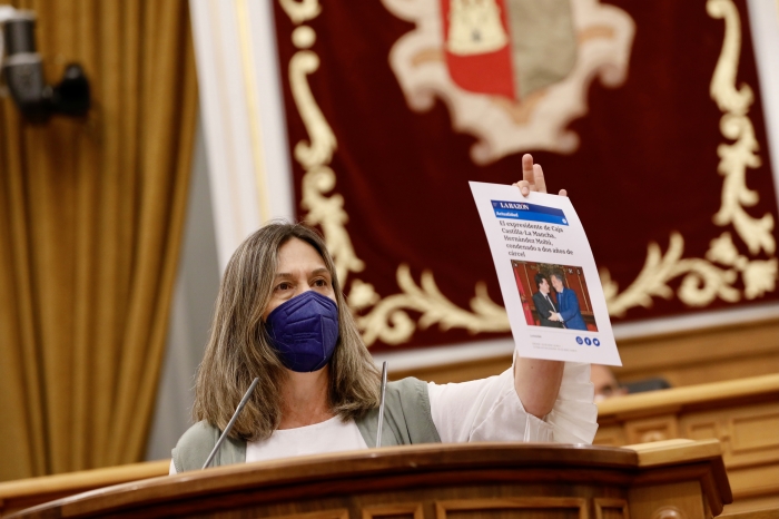 Sobre el asunto que centra el debate general, la diputada regional por la provincia de Guadalajara ha preguntado al PSOE si van a traer al pleno el caso de Paco Pardo, ex presidente de las Cortes Regionales y director general de la Policía, imputado por desproteger a los agentes en los disturbios de Barcelona. Y ha preguntado también si van a traer a las Cortes el debate sobre la apertura de juicio oral contra el actual presidente de la Diputación Provincial de Albacete, Santiago Cabañero, actual secretario general del PSOE de Albacete, imputado por un presunto delito de prevaricación.